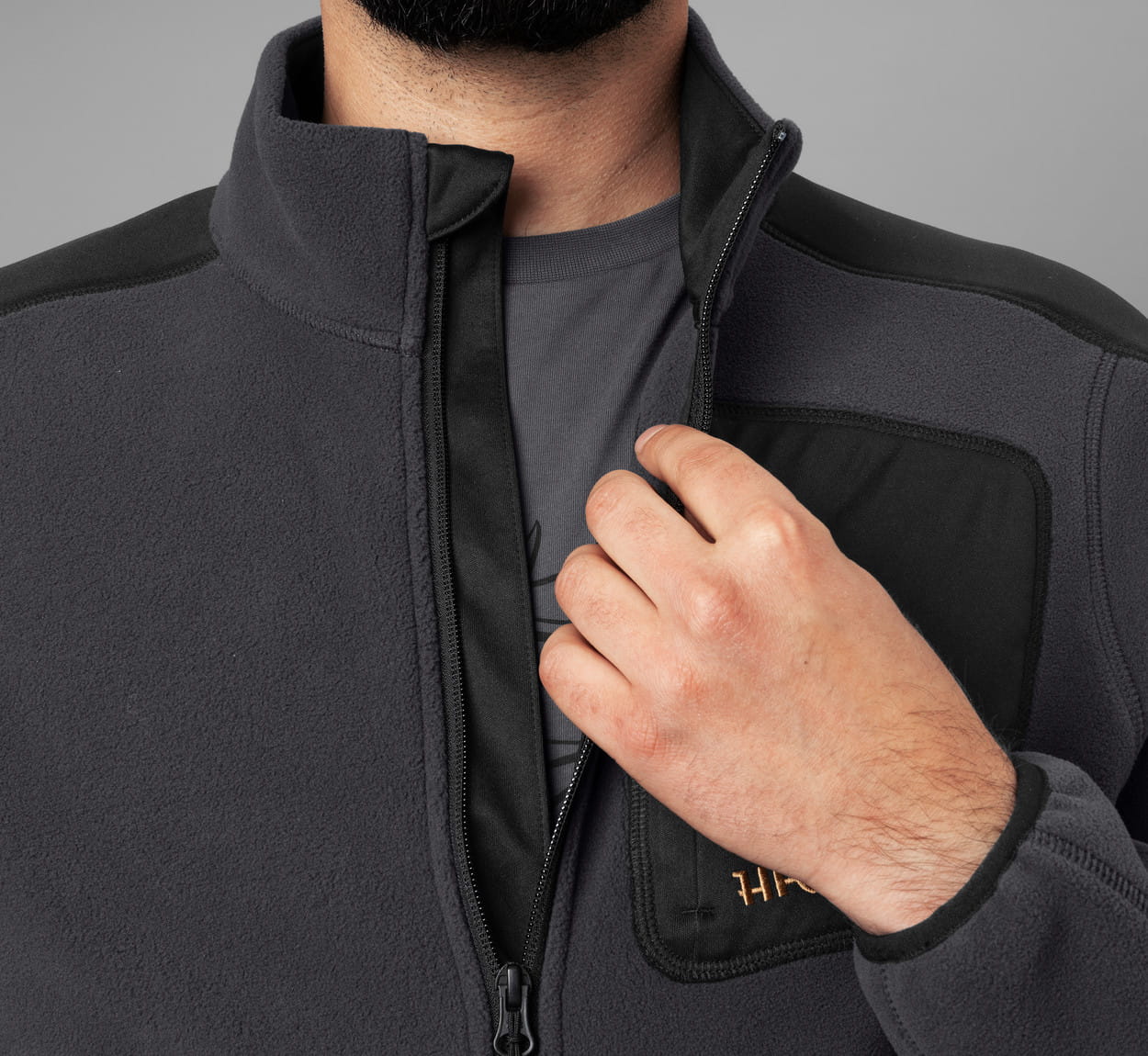 Bluza wykonana została z ekologicznego, bazującego na recyklingu materiału Polartec200®. Zastosowany materiał jest miękki, przyjemny do skóry, skutecznie izoluje przed zimnem oraz wydajnie odprowadza wilgoć wytwarzaną przez organizm podczas wysiłku. Cienkie poliestrowe włókna dzięki swojej strukturze zatrzymują cząsteczki ciepłego powietrza i jednocześnie przepuszczają parę wodną na zewnątrz. Dzięki takim właściwościom polaru tkanina jest powszechnie stosowana do produkcji odzieży myśliwskiej, outdoorowej oraz wojskowej.