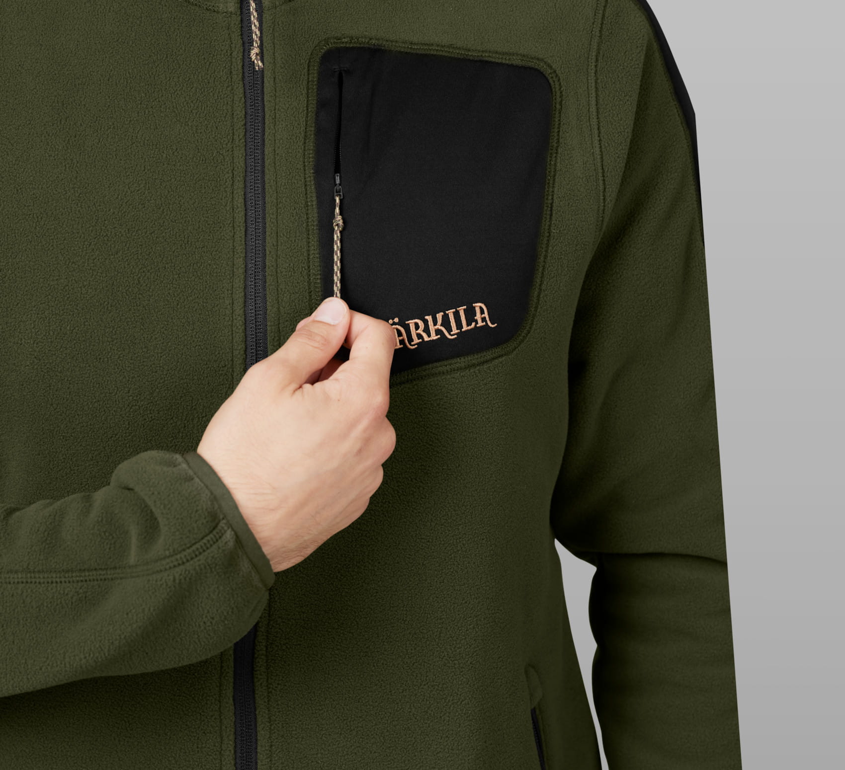 Bluza wykonana została z ekologicznego, bazującego na recyklingu materiału Polartec200®. Zastosowany materiał jest miękki, przyjemny do skóry, skutecznie izoluje przed zimnem oraz wydajnie odprowadza wilgoć wytwarzaną przez organizm podczas wysiłku. Cienkie poliestrowe włókna dzięki swojej strukturze zatrzymują cząsteczki ciepłego powietrza i jednocześnie przepuszczają parę wodną na zewnątrz. Dzięki takim właściwościom polaru tkanina jest powszechnie stosowana do produkcji odzieży myśliwskiej, outdoorowej oraz wojskowej.
