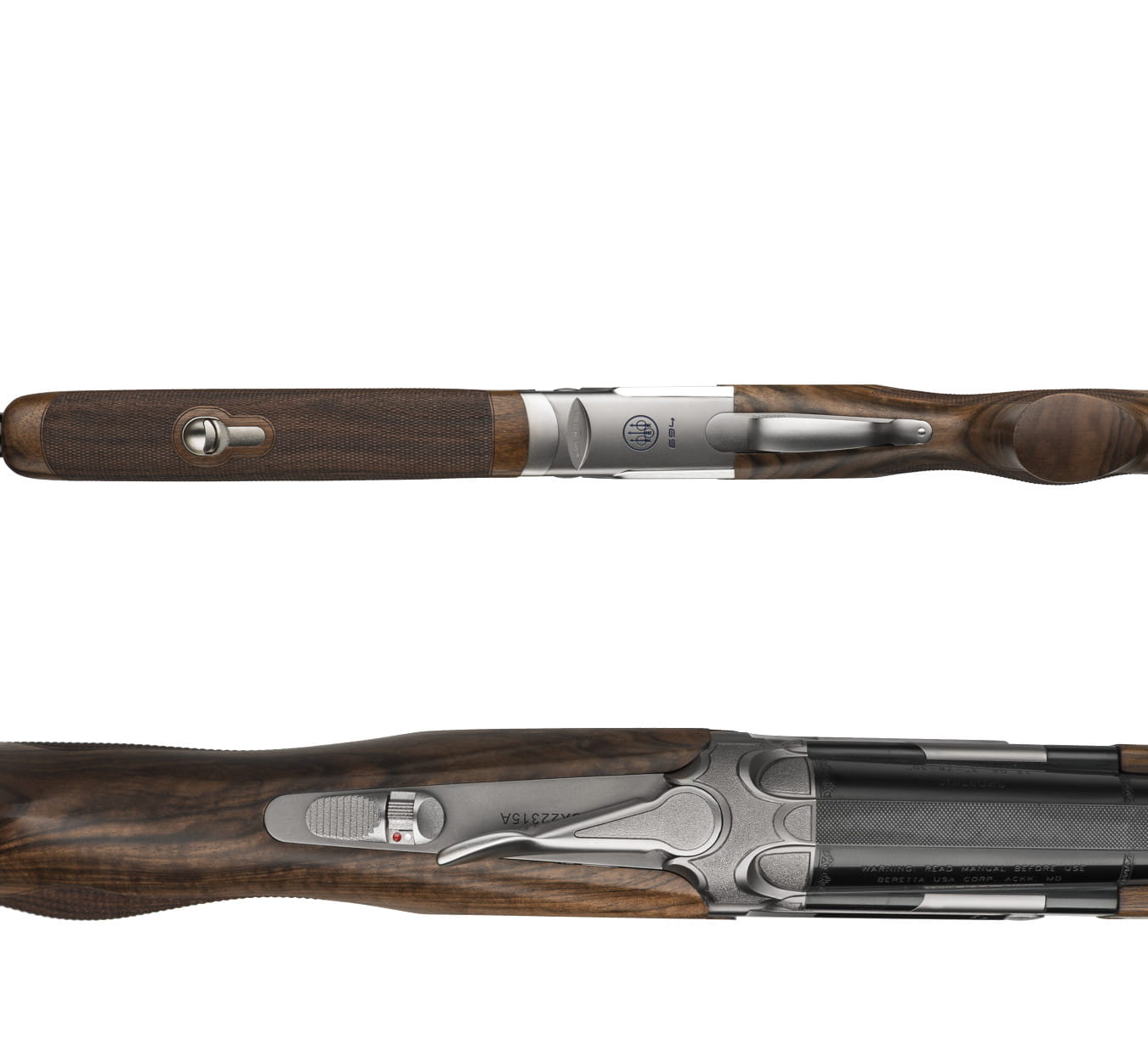 Beretta 694 Sporting posiada klasyczny system ryglowania Beretta z trapezoidalnymi ramionami i dwoma wytrzymałymi kołkami, które wystają z czoła zamka i są wsuwane do odpowiednich otworów po bokach komory nabojowej. Nowo zaprojektowana baskila ma nowoczesny, sportowy wygląd i zawiera boczne panele z lustrzanym profilem i ukośnymi liniami podkreślonymi niebieską grafiką. Spód baskili zdobią trzy strzały logo Beretty 694, ponownie w kolorze niebieskim, a wykończenie powierzchni „Nistan” nadaje jej typowy matowy, szary kolor.