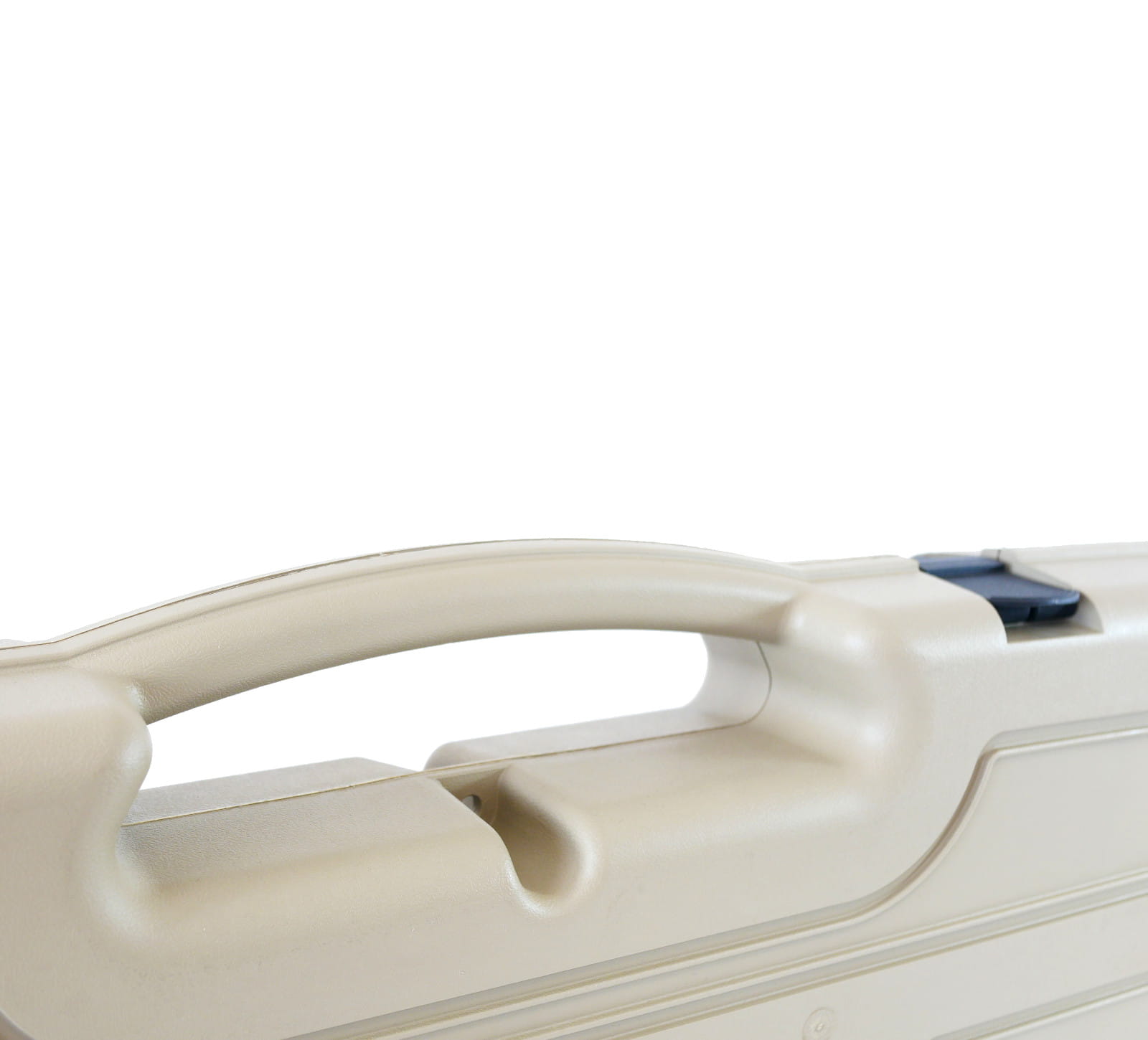 Wytrzymały futerał na broń o długości 124cm wykonany z lekkiego i odpornego na wstrząsy tworzywa sztucznego. Kufer od wewnątrz wyłożony został specjalnie profilowaną gąbką. Wyjmowana gąbka podtrzymuje broń, zapobiega przesuwaniu i skutecznie ochrania podczas transportu.