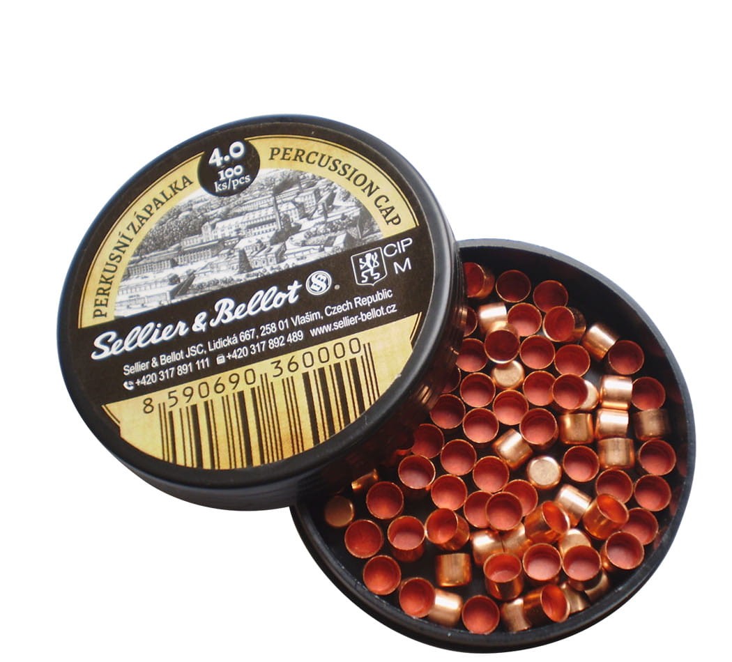 Wysokiej jakości kapiszony czeskiej marki Sellier & Bellot do rewolwerów i pistoletów czarnoprochowych.