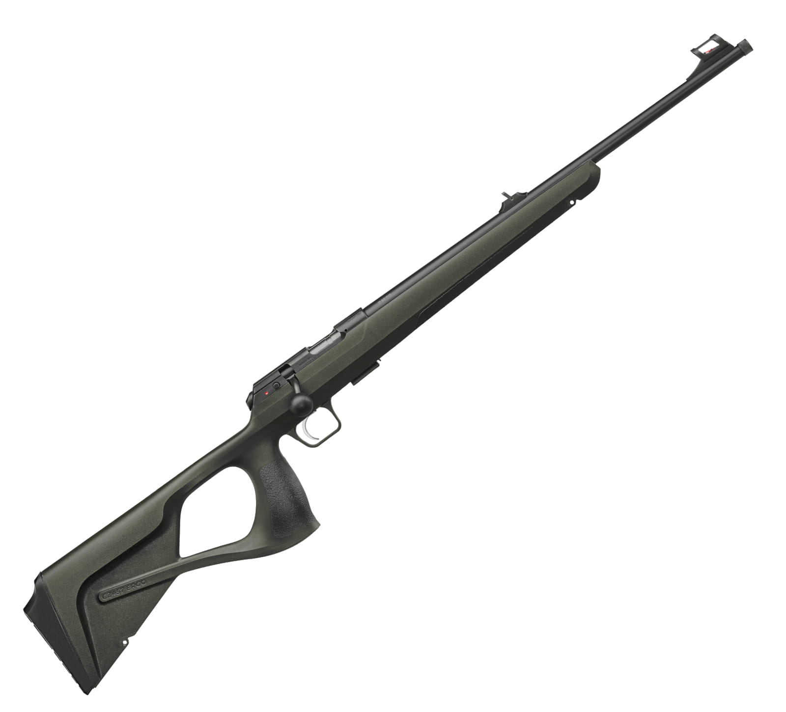 CZ 457 Ergo to model karabinka bocznego zapłonu (.22 LR) zbudowany na popularnej i sprawdzonej platformie CZ 457, wzbogacony o nową kolbę typu „Thumbhole”, inspirowaną konstrukcją CZ 600 ERGO. Ta polimerowa kolba, wzmocniona włóknem szklanym i wyposażona w nakładaną bakę policzkową, oferuje doskonały komfort i wysoką trwałość, zachowując jednocześnie bardzo niską wagę (ok. 2,3 kg). CZ 457 Ergo wyposażono w kutą na zimno lufę o długości 525mm (20") ze znormalizowanym gwintem do montażu urządzeń wylotowych. Karabinek dostępny jest w wersji z przyrządami celowniczymi lub bez, która idealnie nadaje się do montażu lunety. W wersji z przyrządami celowniczymi otwory montażowe można zakryć dołączonymi zaślepkami po ich demontażu.
