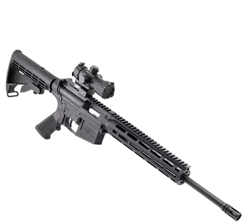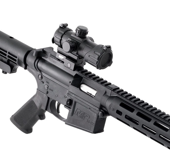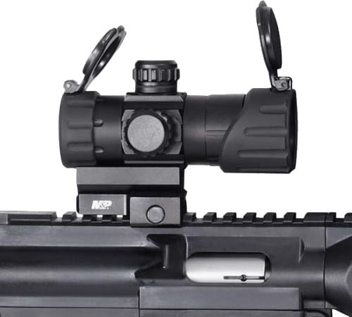 W zestawie z karabinkiem znajduje się dołączony przez producenta kolimator MP-100 M&P. Celownik posiada kropkę o rozmiarze 4 MOA podświetlaną w kolorze czerwonym i zielonym. Zasilanie pojedynczą baterią CR1620