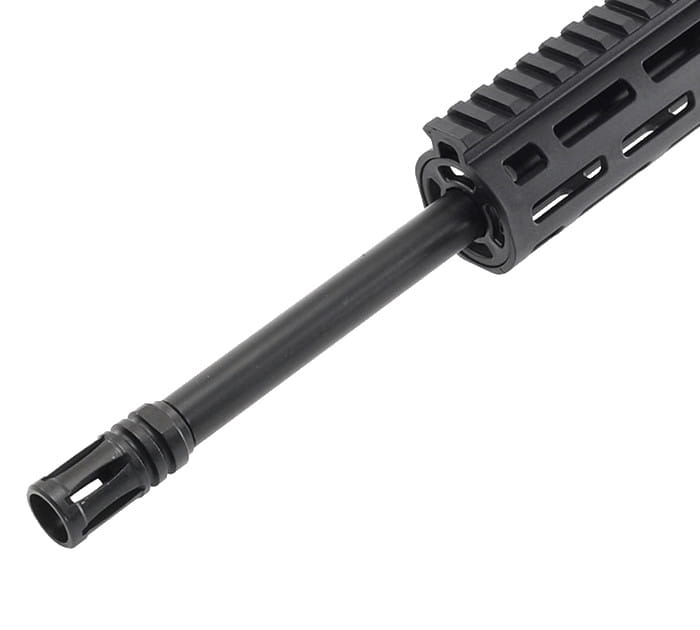 Karabinek wyposażono w lufę o klasycznej długości 16,5’’ (420mm) wykończoną metodą „Armonite” zabezpieczającą broń przed korozją. M&P 15-22 posiada 10-calowe smukłe łoże M&P, które wykonano w popularnym systemie Magpul M-LOK™. System M-LOK umożliwia właścicielowi karabinka łatwe dołączanie różnorodnych akcesoriów bez zdejmowania samego łoża. M&P 15 korzysta z obniżonej masy (2,35kg) zachowując wygląd i funkcje operacyjne standardowego karabinu taktycznego. Doskonale sprawdzi się w rekreacyjnym strzelaniu sportowym.