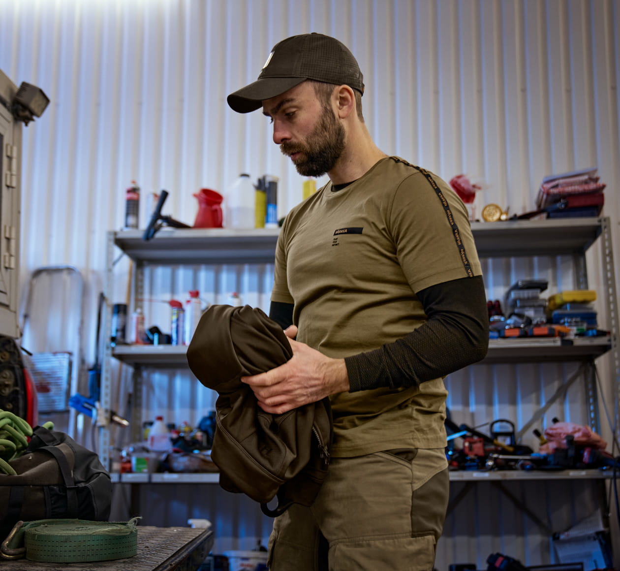 - Haftowana taśma z logo Härkila na ramionach i rękawach