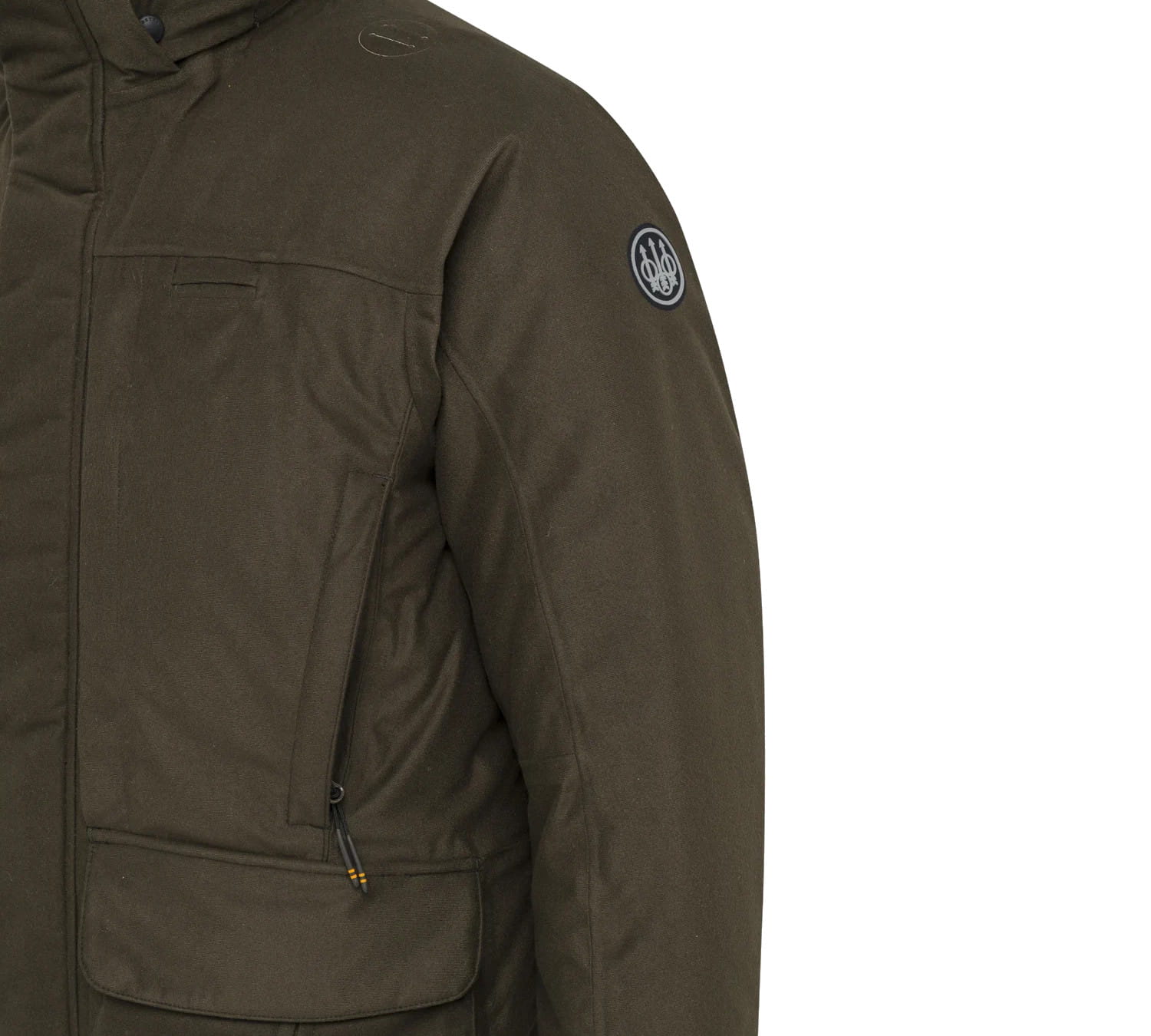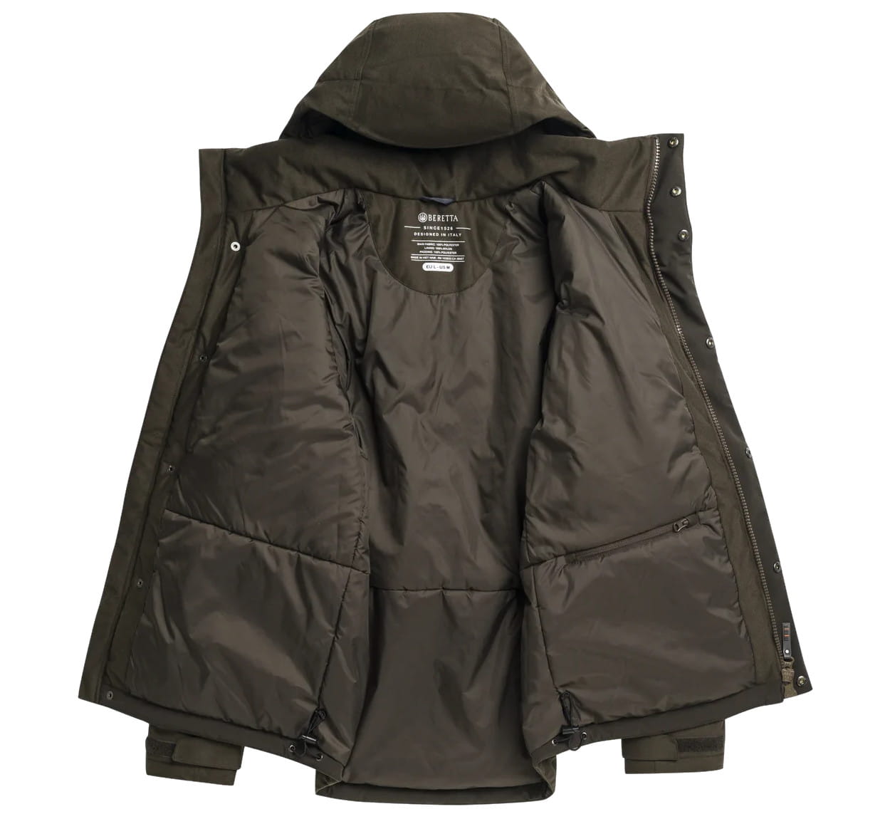 Dzięki membranie Beretta Waterproof Breathable (BWB) EVO kurtka jest wodoodporna, termiczna i oddychająca. Dodatkowo syntetyczne wypełnienie (180 g w korpusie i 160 g w rękawach) gwarantuje skuteczną ochronę przed zimnem. Materiał zewnętrzny to wytrzymała, bezgłośna poliestrowa gaza z powłoką DWR. Kurtka posiada liczne kieszenie umożliwiające przechowanie niezbędnych przedmiotów zawsze pod ręką.