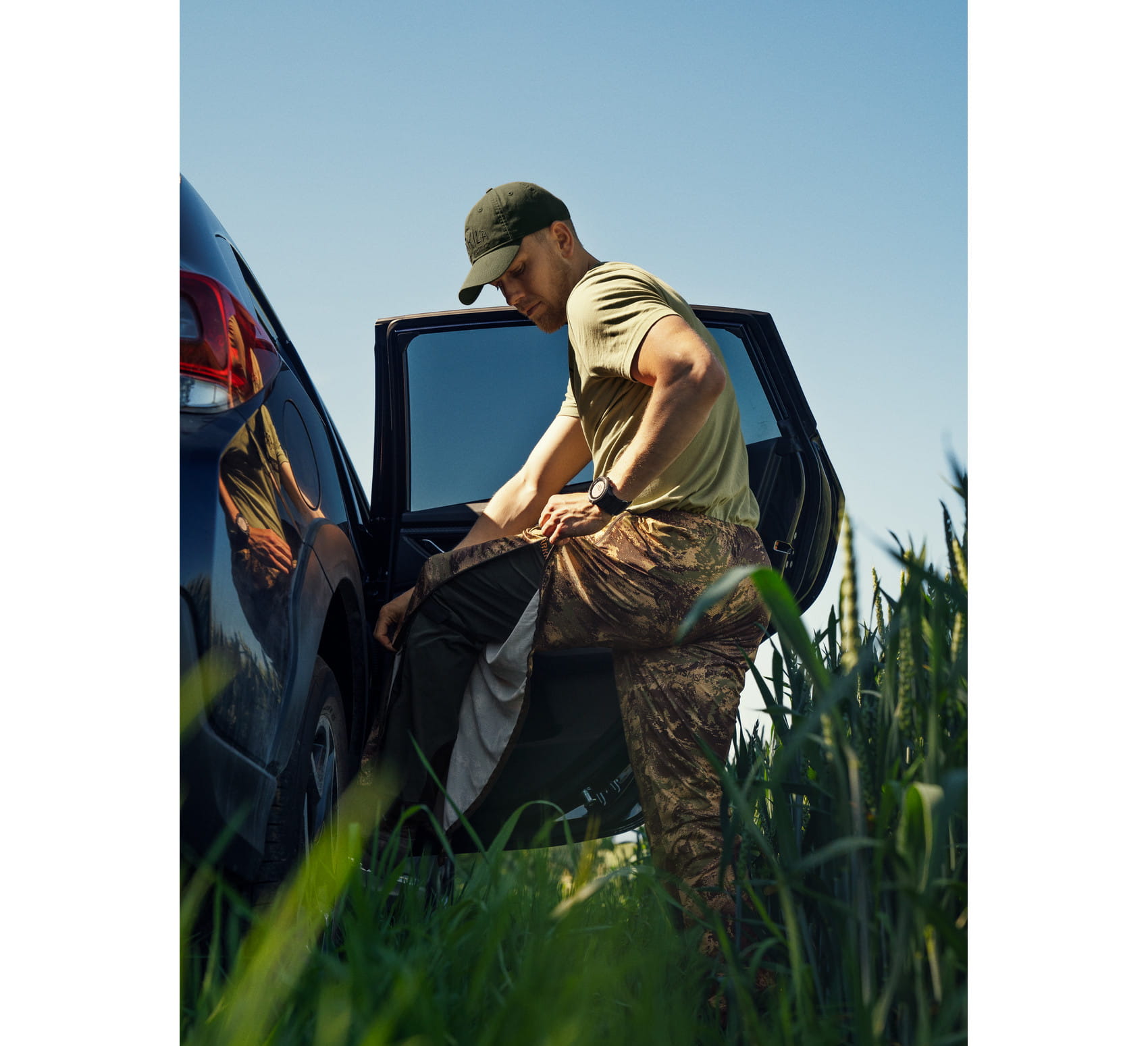 Spodnie wykonano z bardzo lekkiej, przewiewnej i szybkoschnącej tkaniny siatkowej i doskonale nadają się do noszenia na szortach myśliwskich podczas skradania się w ciepłe dni. Są na tyle lekkie i łatwe do noszenia ze sobą, że mogą być również zakładane na grubszą odzież podczas jesiennych polowań. Spodnie mają suwaki boczne na całej długości, dzięki czemu można je łatwo założyć i zdjąć bez zdejmowania butów. Dzięki specjalnym przeszyciom mamy ułatwiony dostęp do kieszeni w spodniach.
