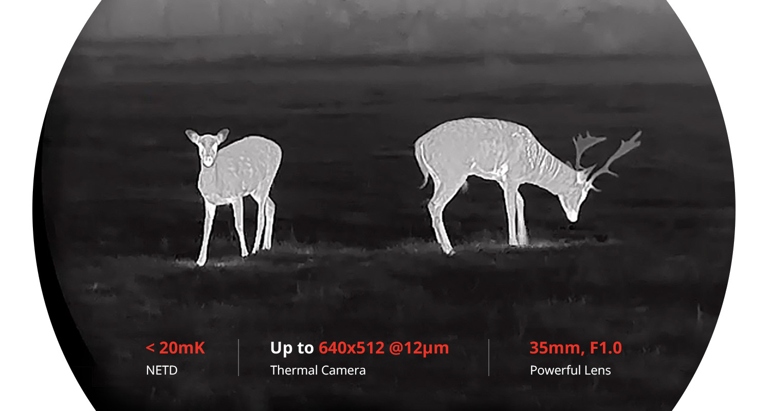 HIKMICRO Habrok oparto na dwóch zaawansowanych sensorach - termicznym o rozdzielczości 640x512 px, oraz cyfrowym CMOS 2560x1440px odpowiadającym za obrazowanie w zakresie światła widzialnego, oraz IR. Dzięki takiemu hybrydowemu rozwiązaniu możemy płynnie przechodzić z jednej funkcji w drugą, co zapewnia niebywały komfort pracy przy zachowaniu wysokiej jakości i szczegółowości. Uzyskujemy tym sposobem możliwość obserwacji detali celu i otoczenia niedostępną dla standardowych kamer termowizyjnych. Lornetka termowizyjna HIKMICRO Habrok HQ35L otrzymała również zintegrowany iluminator podczerwieni (IR) pracujący w zakresie 940nm, który gwarantuje możliwość pracy nawet w absolutnych ciemnościach. Dzięki zastosowanemu układowi optycznemu możemy przy pomocy pokrętła regulować skupienie jego wiązki. Nowa wersja Habrok HQ35L posiada możliwość wymiany modułu IR na fabryczny iluminator z mocniejszą wiązką 850nm (lepsze doświetlenie kosztem większej widoczności dla zwierzyny).