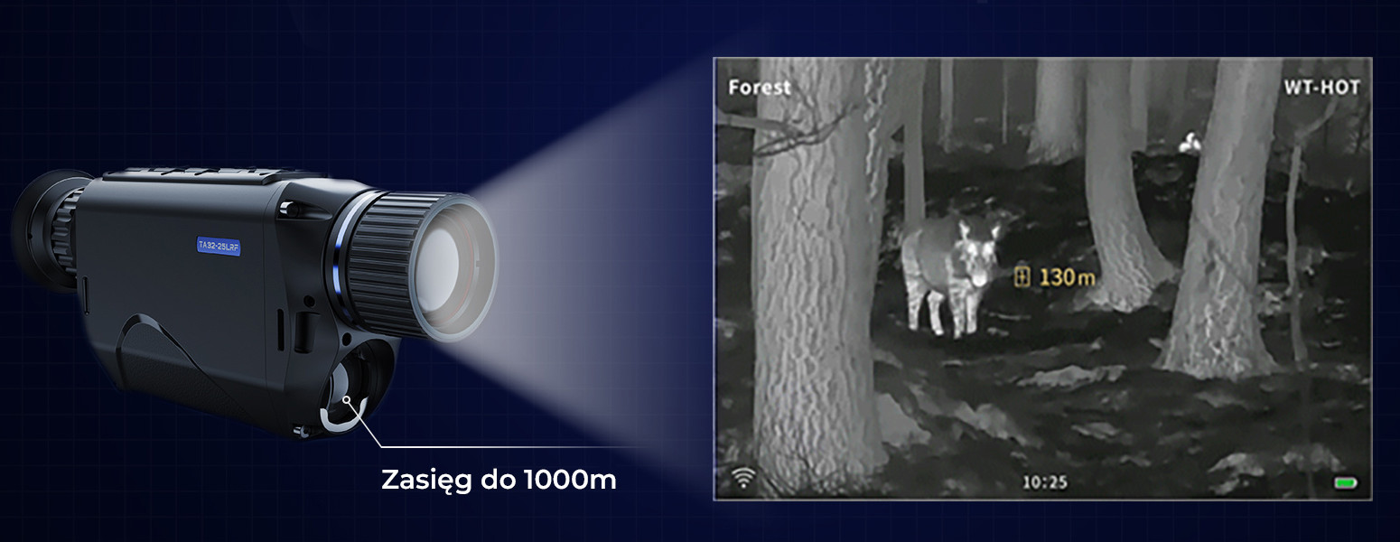 Wszystkie termowizory z serii PARD TA-32 LRF wyposażone są w zintegrowany dalmierz laserowy (LRF), pozwalający na dokładny pomiar odległości na dystansach do 1000 metrów. Jest to dosyć istotny element w urządzeniach termowizyjnych gdzie charakterystyka wyświetlanego obrazu może utrudnić naoczne określenie odległości do celu.
