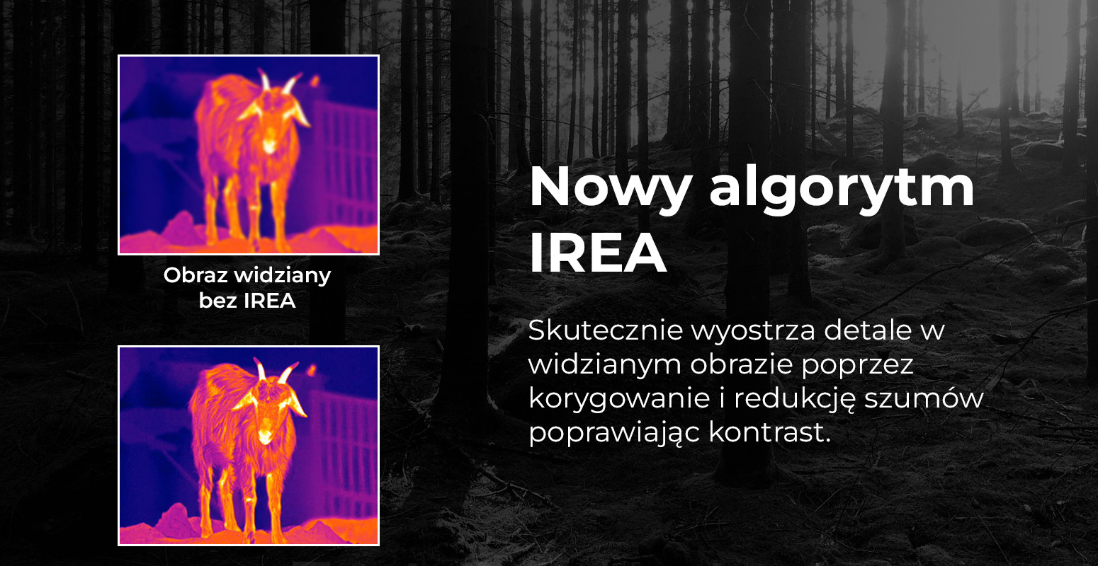 Serce monokularu PARD TA-32 LRF a więc wysokiej jakości czujnik precyzyjnie wykrywa różnice temperatur, doskonale uwidaczniając na wyświetlaczu wszystkie szczegóły nawet przy niesprzyjających warunkach takich jak deszcz czy mgła. Przetwornik obrazu został zaprojektowany z wykorzystaniem zaawansowanej technologii, tak aby zapewnić bez żadnych ograniczeń ostry i czytelny obraz. Termowizor wykorzystuje ponadto specjalne oprogramowanie IREA stworzone dla urządzeń firmy PARD z algorytmem ulepszenia obrazu, który zapewnia większą czułość podczerwieni oraz zmniejsza powstające zniekształcenia. Skutecznie wyostrza detale w widzianym obrazie poprzez korygowanie i redukcję szumów poprawiając kontrast.