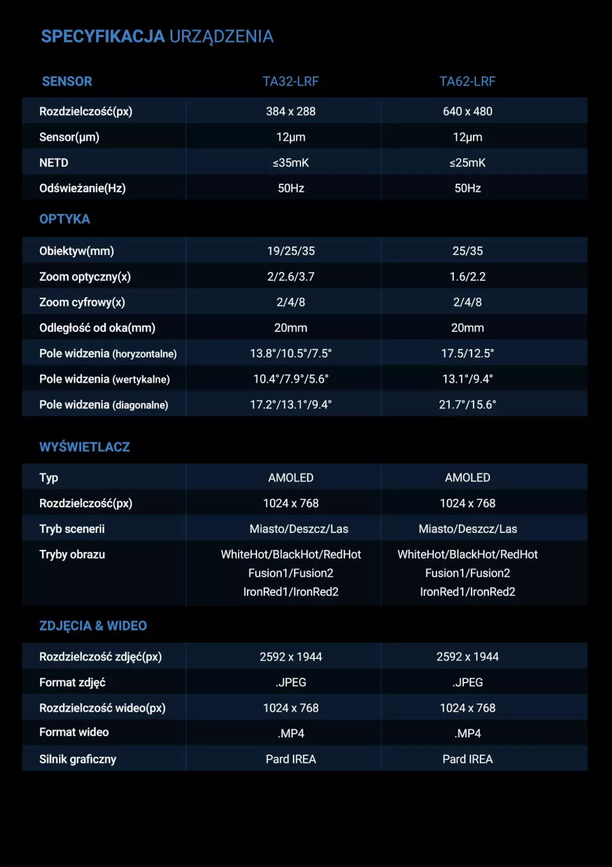 PARD TA-32 LRF to wysokiej klasy monokular termowizyjny z wbudowanym dalmierzem laserowym, który jest zarówno kompaktowy jak i lekki. Urządzenie wchodzi w skład nowej serii kieszonkowych termowizorów, które w ofercie producenta występują w wersjach z obiektywem 19/25/35mm.