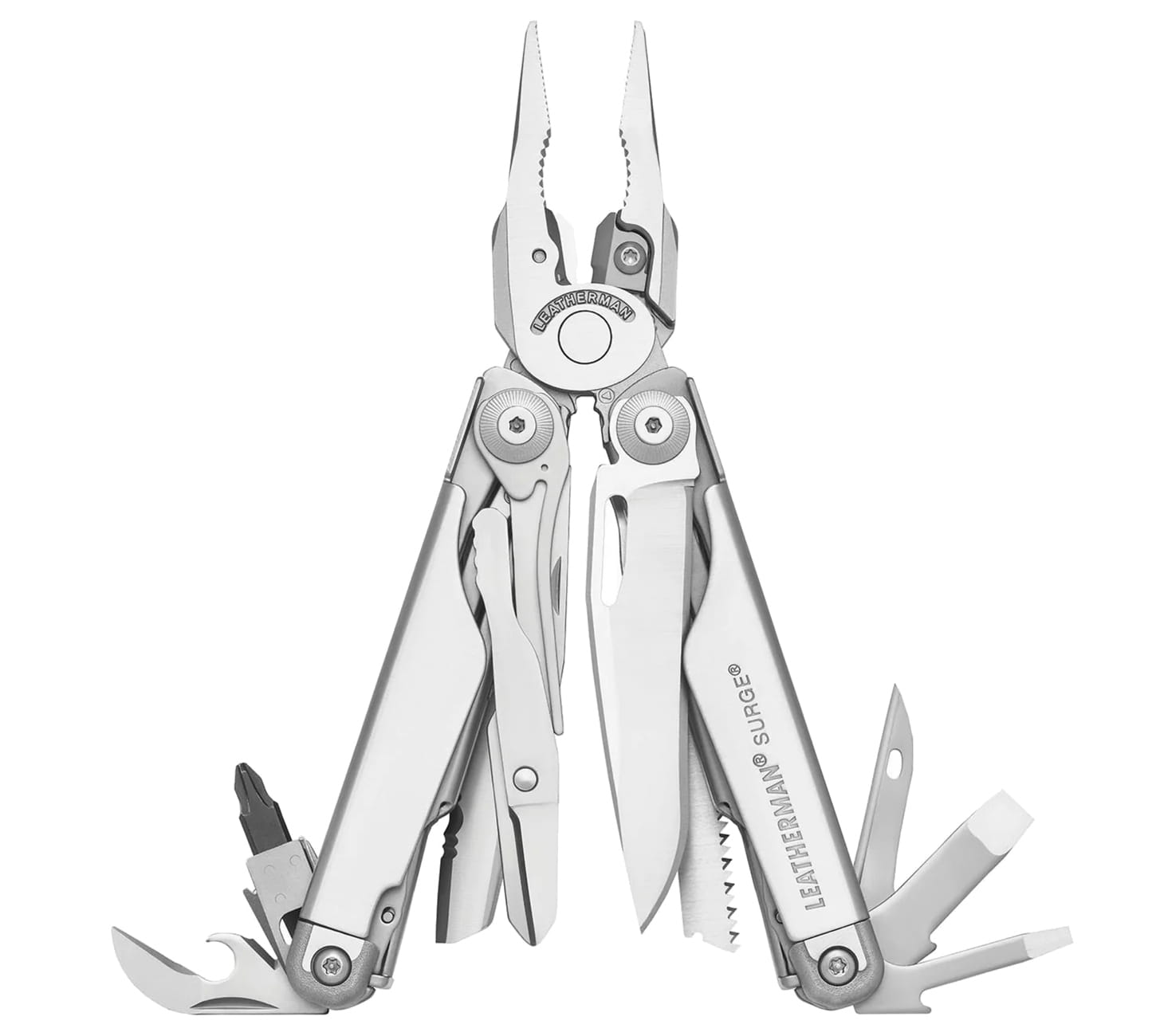 Surge oraz Super Tool 300 to jedne z największych modeli multitooli w portfolio marki Leatherman. Prezentowany Surge posiada bowiem aż 21 wysoce wszechstronnych narzędzi, większą integrację głównej funkcji kombinerek, szerszy wybór ostrzy oraz łatwą w użyciu funkcję blokowania. Wyjątkowy zmieniacz ostrzy, wymienne przecinaki do drutu i cztery otwierane na zewnątrz ostrza zapewniają szybki dostęp do najczęściej używanych narzędzi.