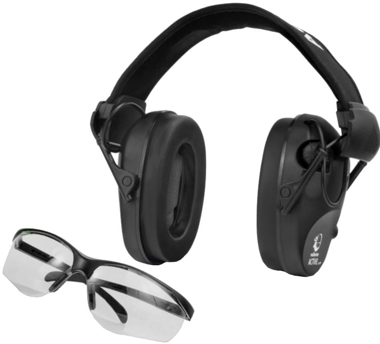 Ochronniki słuchu aktywne RealHunter Active PRO + okulary - Czarny