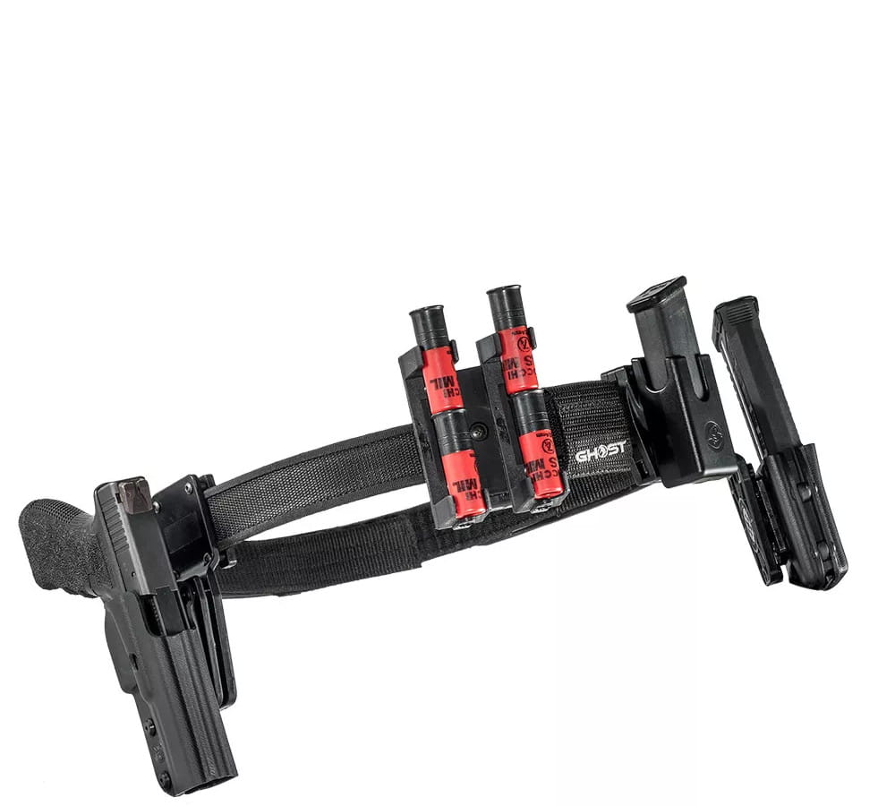 Pas włoskiej firmy Ghost przeznaczony do IPSC jak również do innych dyscyplin strzelectwa dynamicznego. Pas posiada usztywnianą konstrukcję pozwalającą na wygodne i stabilne przenoszenie wyposażenia. W komplecie pas zewnętrzny i wewnętrzny z rzepem velcro.
