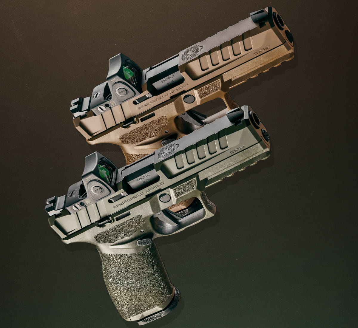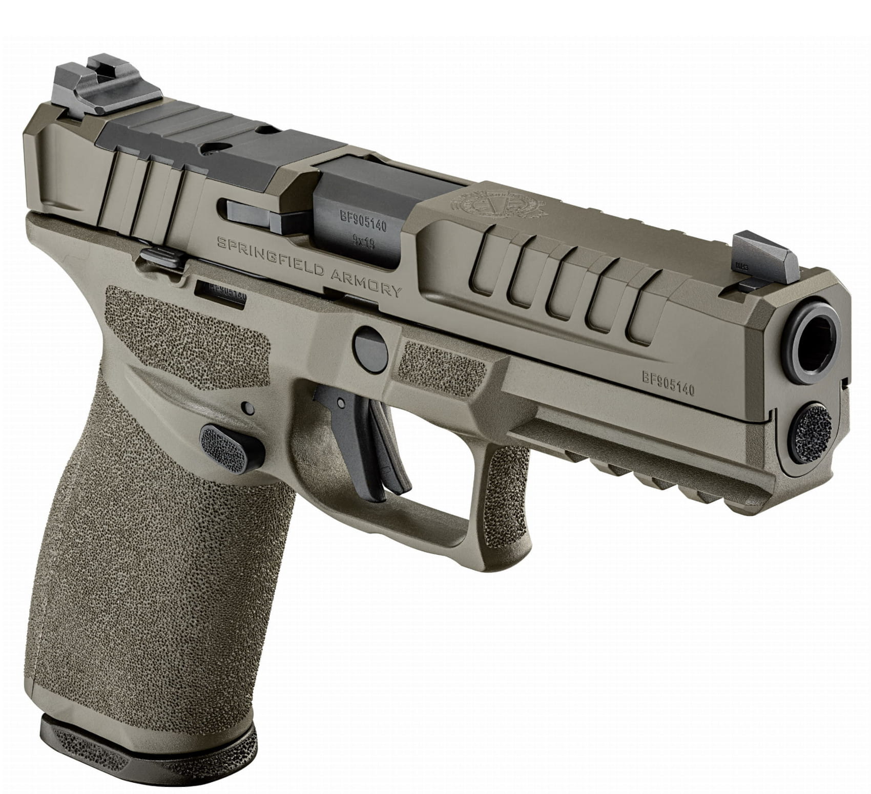 Prezentowana wersja pistoletu HS-ECHELON wykończona została w kolorze militarnej zieleni (OD GREEN), zarówno zamek jak i szkielet.