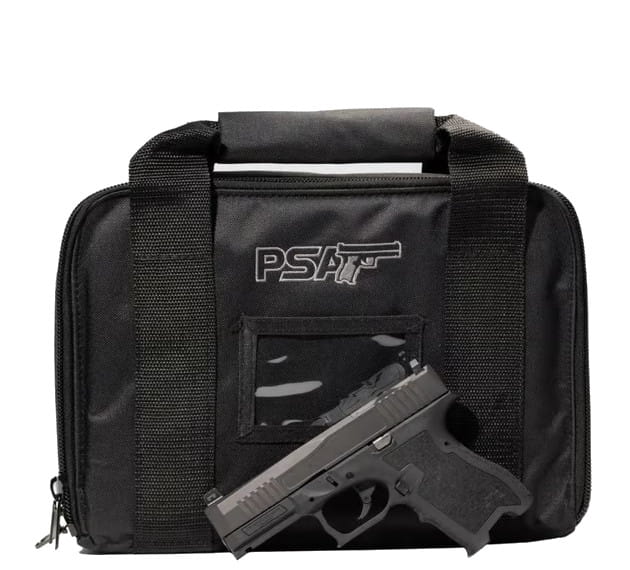 Pistolet w zestawie posiada jeden 15-nabojowy magazynek oraz miękki pokrowiec do przechowywania od Palmetto State Armory.