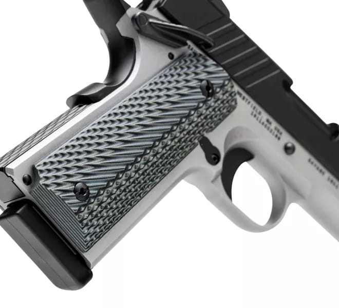 Savage 1911 2-Tone jest zbudowany ze stali nierdzewnej i ma podwójną sprężynę powrotną oraz obrobiony maszynowo zaczep i przerywacz. Podczas gdy wygląd jest hołdem dla oryginału, Savage 1911 jest stworzony do intensywnego użytkowania. Od tytanowej iglicy pokrytej azotkiem po tarczową koronę na lufie, ten 1911 zapewnia dokładność i wysoką niezawodność.
