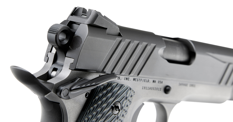 Savage 1911 2-Tone jest modelem nowoczesnym co widać na każdym kroku. Precyzyjna obróbka elementów ze stali nierdzewnej, zastosowanie okładzin z lekkiego i wytrzymałego laminatu G10, przyrządy celownicze z kapsułkami trytu (tylko w wybranych modelach), ale również system podwójnej sprężyny powrotnej to ukłony w stronę nowych rozwiązań. Precyzyjnie wykonana 5” lufa ze starannie wykonaną targetową koronką o skosie 11 stopni, zapewnia najkorzystniejsze dla balistyki, rozchodzenie się gazów po opuszczeniu przez pocisk lufy. Doskonałej celności sprzyja również świetny (jak to w przypadku 1911-tek) spust i równie doskonałe, nisko-profilowe, przyrządy celownicze. Do tego ciesząca oko, kontrastowa stylistyka Two-Tone, udanie łączy czerń zamka ze stalowym błyskiem szkieletu pistoletu.