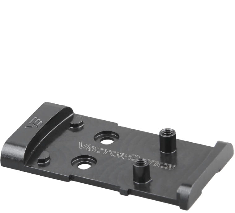 Stalowa płytka montażowa umożliwiająca montaż kolimatora Vector Optics Frenzy z rozstawem śrub w standardzie VECTOR MAG na pistolecie GLOCK z fabrycznym wcięciem w zamku pod optykę - system GLOCK MOS (Modular Optics System).