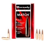 Pociski Hornady BTHP Match (Boattail Hollow Point Match) to jedne z najpopularniejszych pocisków do przygotowania tarczowej amunicji o dużej precyzji. Płaszcz wytwarzany jest w procesie AMP (Advanced Manufacturing Process - Zaawansowany Proces Produkcyjny) które mają stałą grubość ścianki płaszcza.