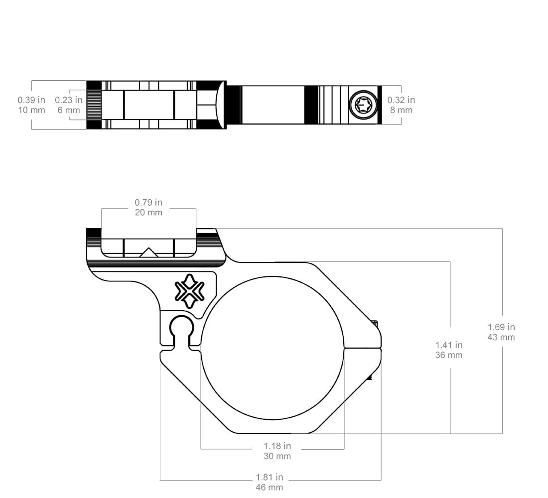 Specjalna budowa nie ogranicza widoczności i nie powiększa znacząco profilu optyki. Zacisk na śrubę typu torx