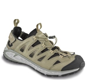 Cholewka butów powstała z wysokiej jakości skóry nubukowej, oferującej znakomite właściwości użytkowe: wytrzymałość, podwyższoną odporność na wodę, a także przyjemną miękkość. Posiada ona również strefy wykonane z przewiewnej siateczki poprawiającej cyrkulację powietrza. Przed wilgocią zabezpiecza wewnętrzna wyściółka Clima, która błyskawicznie odprowadza ją na zewnątrz, pozostawiając tym samym stopy w poczuciu suchości bez względu na okoliczności. Precyzyjne dopasowanie zagwarantowano za sprawą systemu szybkiego sznurowania ze stoperem, a także regulowanemu paskowi znajdującemu się za piętą. Tylna pętelka ułatwia szybkie zakładanie i zdejmowanie sandałów