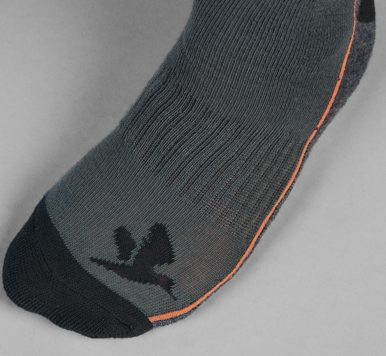 Miękkie skarpety outdoorowe marki Seeland z grubą amortyzującą podeszwą zapewniającą doskonałe wsparcie i ochronę. Wykorzystany materiał pozwala stopom oddychać. Niezwykle miękkie i wygodne. Płaskie szwy dla optymalnego komfortu wokół palców. Elastyczna cholewka zapewnia dobre dopasowanie.