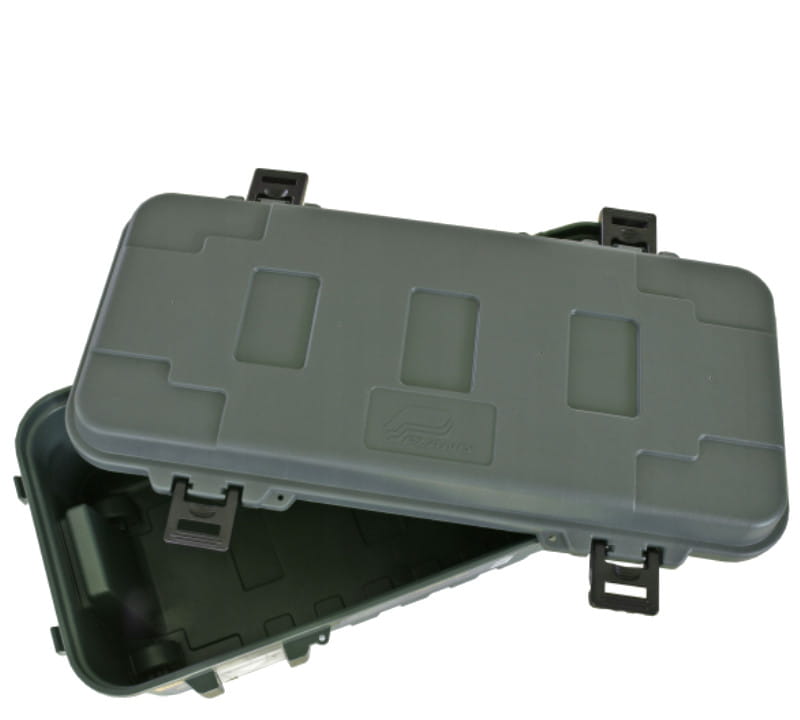 Skrzynia PLANO to doskonały towarzysz każdego miłośnika strzelectwa, outdooru czy airsoftu. Jest niezwykle pojemna i łatwa w transporcie dzięki zastosowaniu dodatkowych kółek. Jej regularny kształt i żłobienia w pokrywie ułatwiają transport w konfiguracji kilku oddzielnych skrzyń. PLANO Sportman’s Trunk dostępna jest w dwóch wersjach kolorystycznych – czarnej i zielonej.
