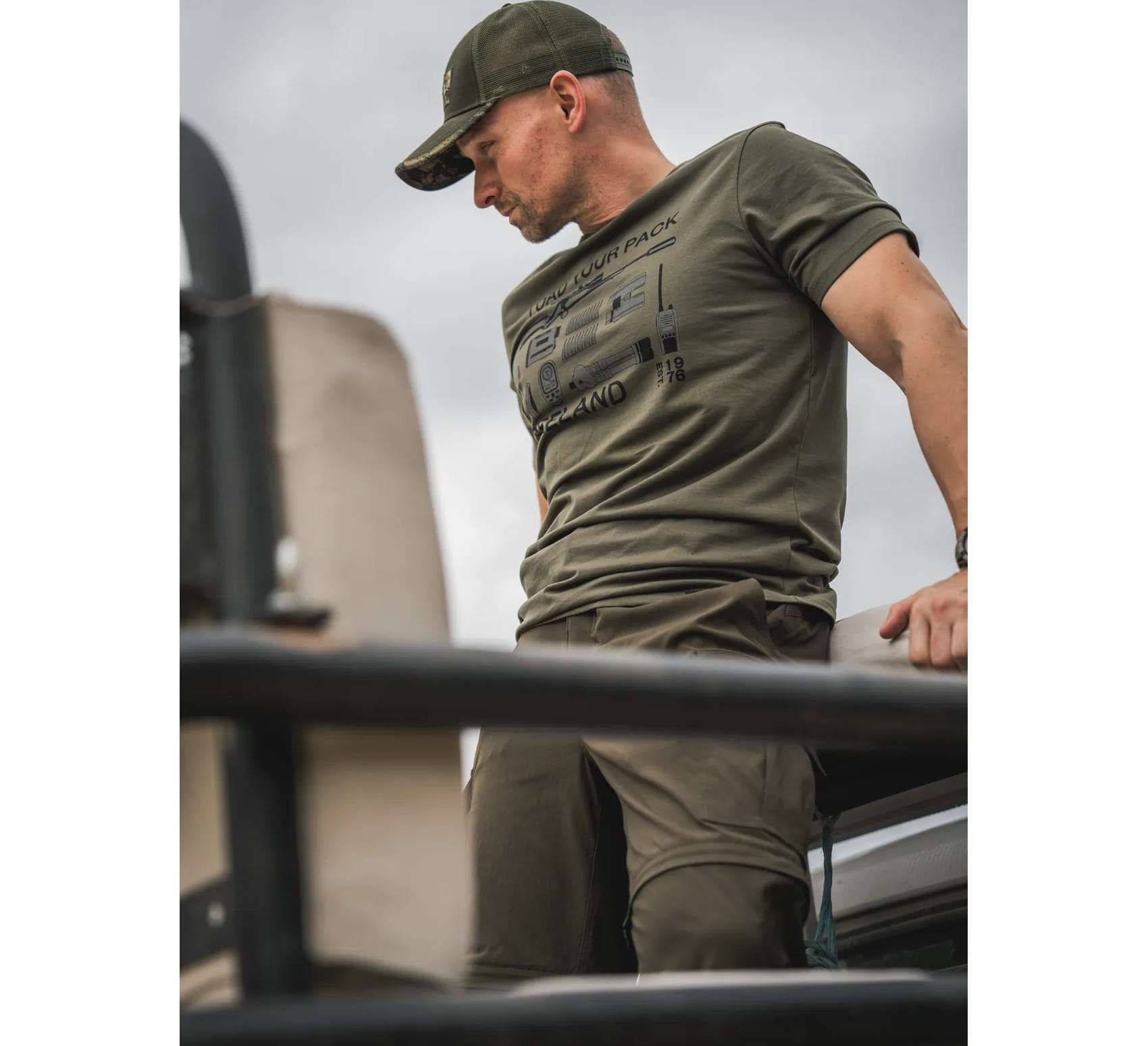 • wytrzymałe spodnie terenowe z rozpinanymi nogawkami